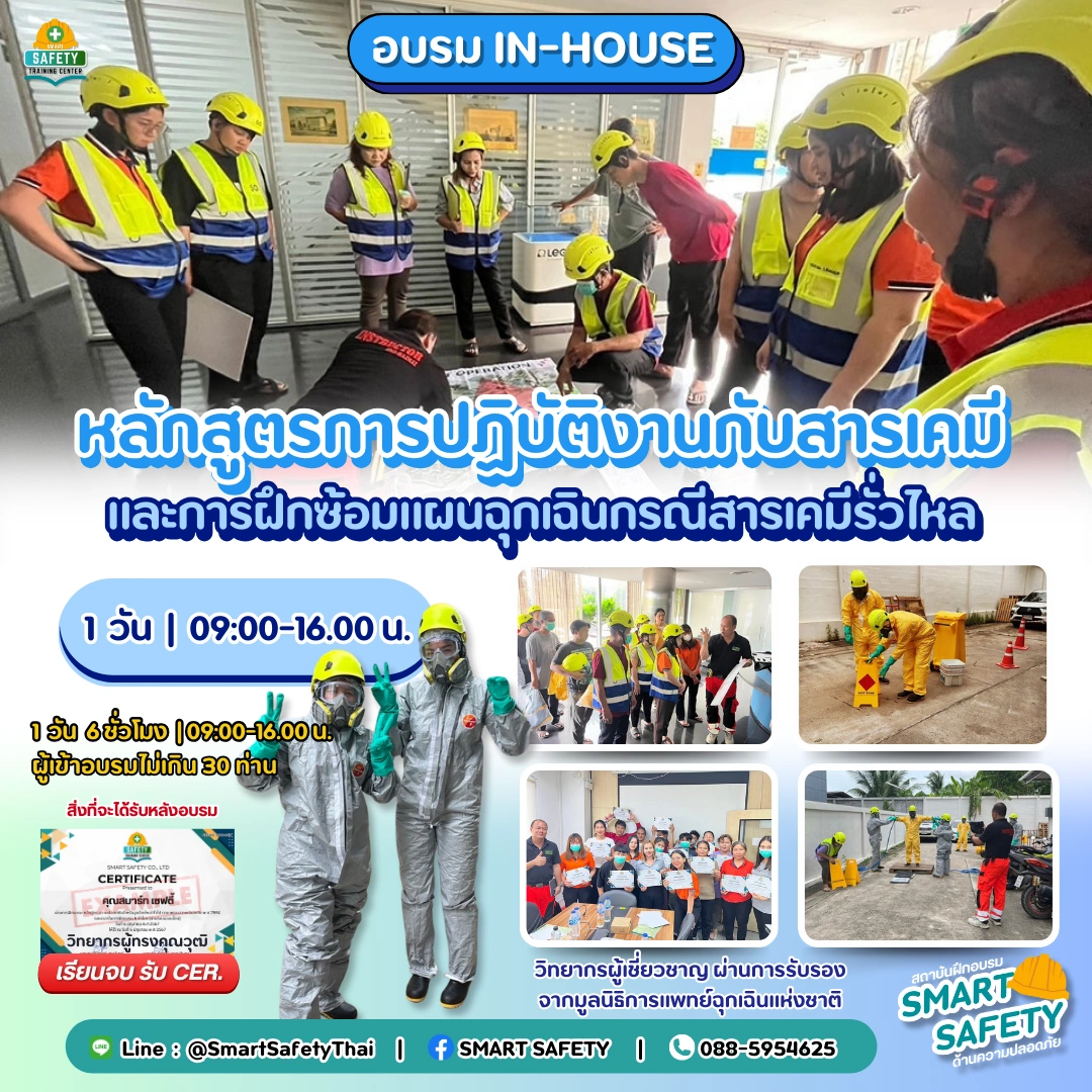 รายละเอียด จองอบรม In-House หลักสูตร การปฏิบัติงานกับสารเคมีและการซ้อมแผนฉุกเฉินกรณีสารเคมีรั่วไหลจากรถขนส่ง