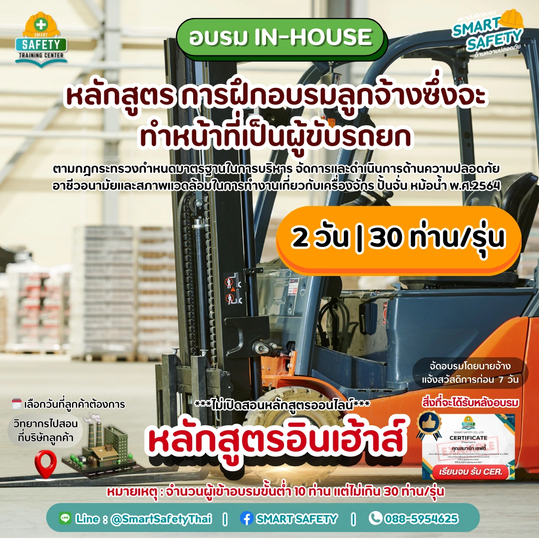 รายละเอียด จองอบรม In-House หลักสูตร การฝึกอบรมผู้บังคับปั้นจั่น ผู้ให้สัญญาณแก่ผู้บังคับปั้นจั่น ผู้ยึดเกาะวัสดุและผู้ควบคุมการใช้ปั้นจั่น