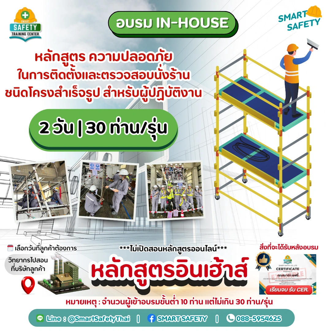 รายละเอียด จองอบรม In-House หลักสูตร ความปลอดภัยในการติดตั้งและตรวจสอบนั่งร้านชนิดโครงสำเร็จรูป สำหรับผู้ปฏิบัติงาน